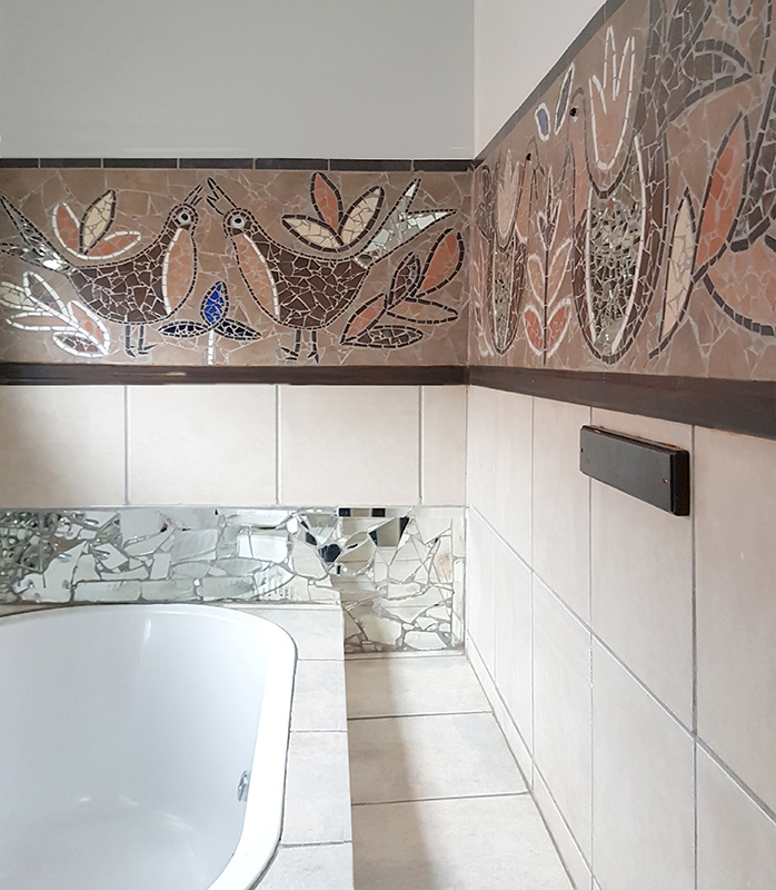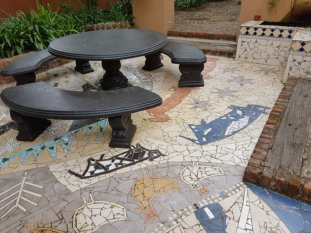 Drini's most impressive artwork is the magnificent mosaic work that makes Izimbali Lodge an artwork in it self.